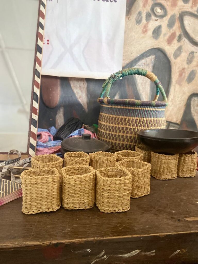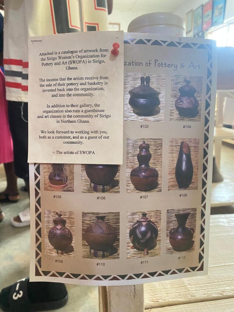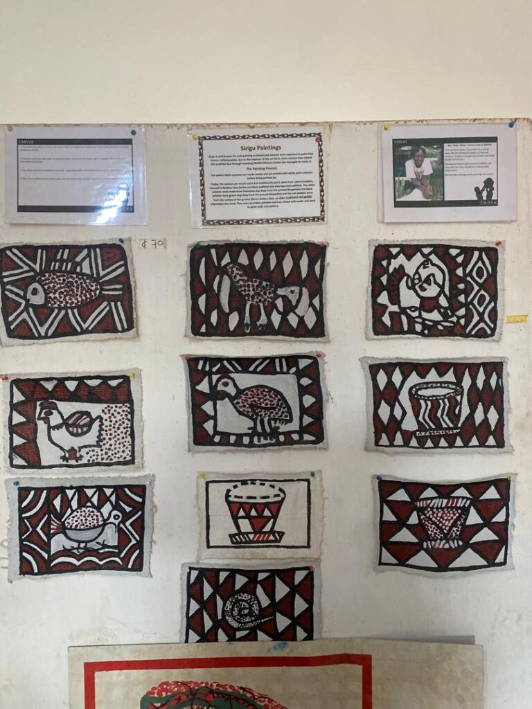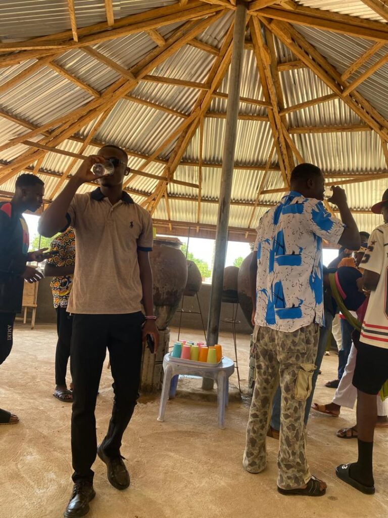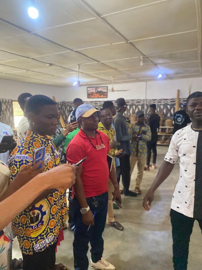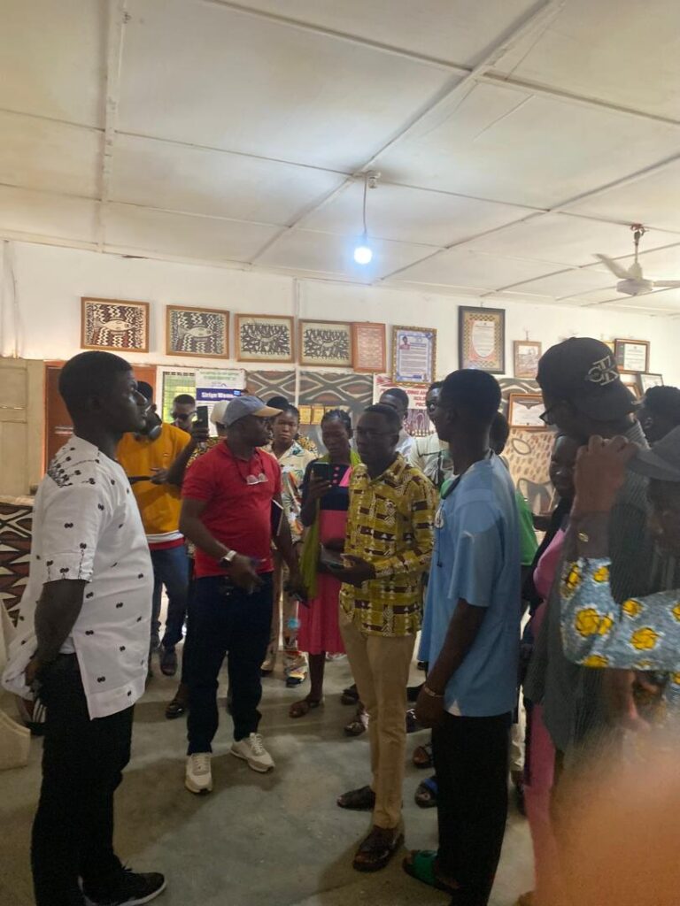 The day began with a visit to Sirigu, a community in the Upper East Region celebrated for its distinctive wall murals, pottery, and basketry. At the Sirigu Women’s Organization for Pottery and Art (SWOPA), students witnessed firsthand the traditional techniques of mural painting using natural pigments, as well as pottery and basket weaving methods passed down through generations. This visit highlighted the role of indigenous women in sustaining Ghana’s cultural identity through art.