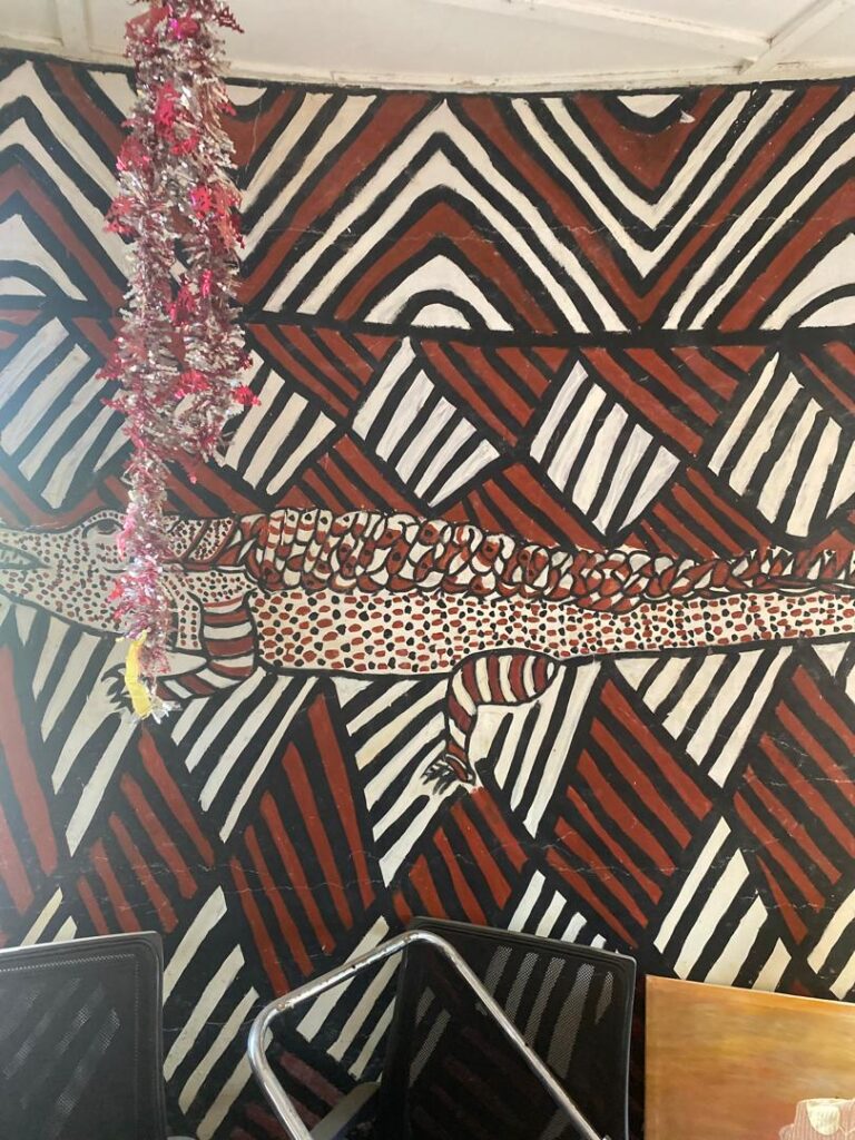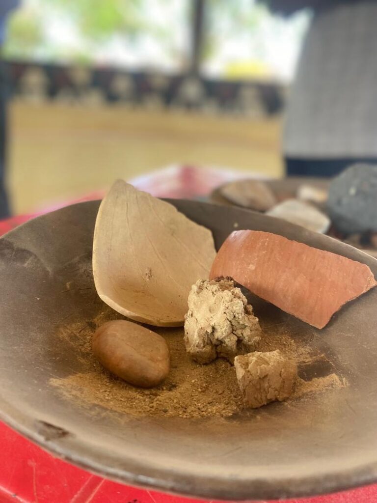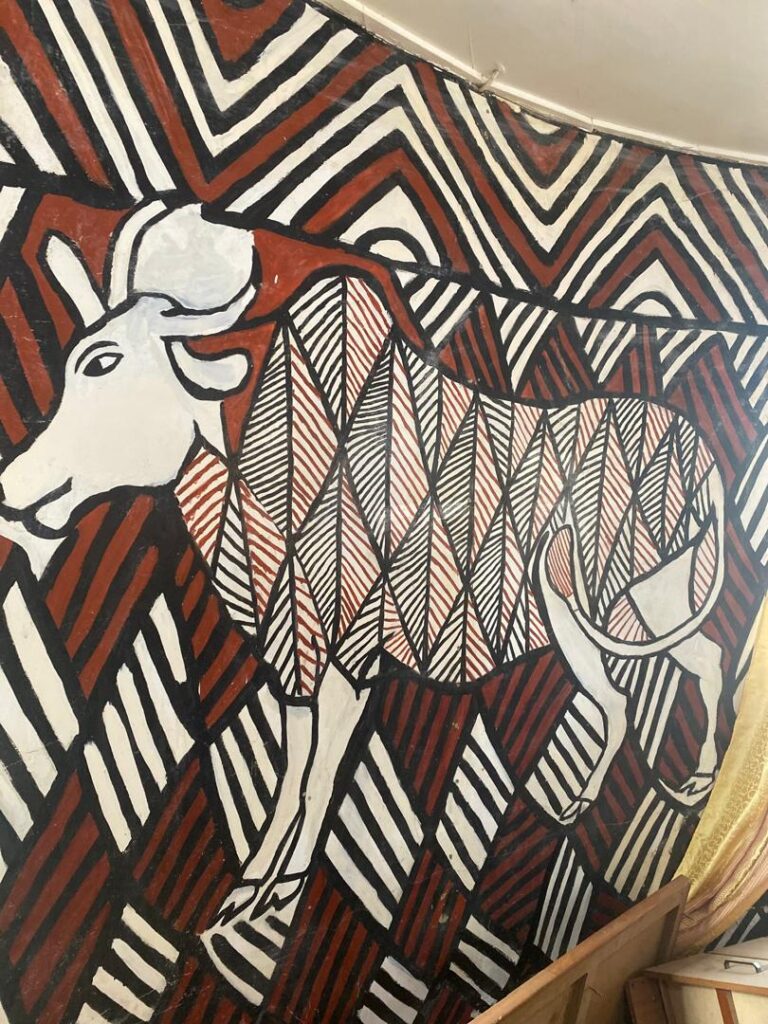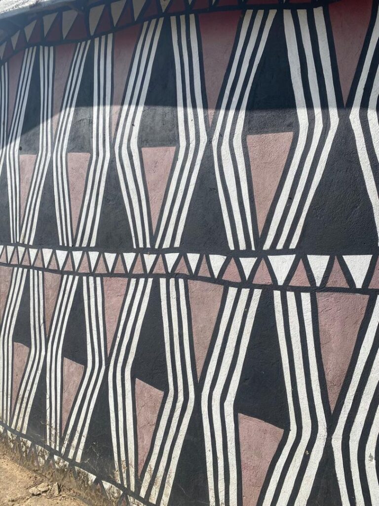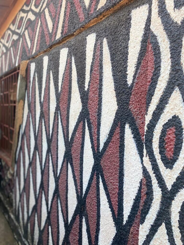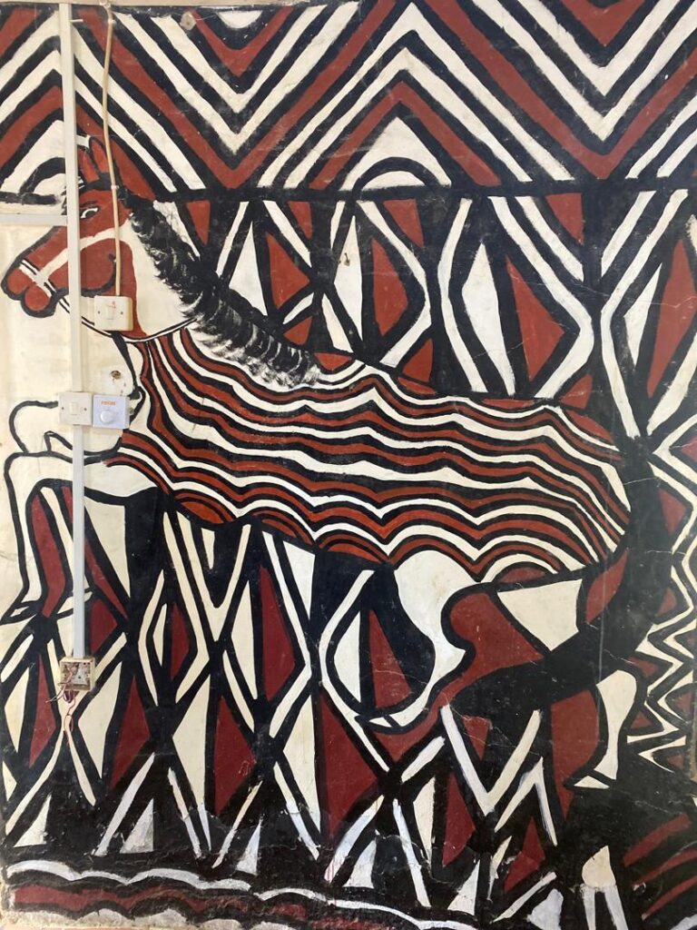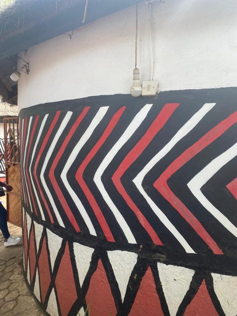 The day began with a visit to Sirigu, a community in the Upper East Region celebrated for its distinctive wall murals, pottery, and basketry. At the Sirigu Women’s Organization for Pottery and Art (SWOPA), students witnessed firsthand the traditional techniques of mural painting using natural pigments, as well as pottery and basket weaving methods passed down through generations. This visit highlighted the role of indigenous women in sustaining Ghana’s cultural identity through art.