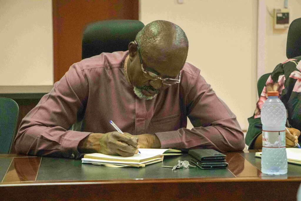 The Management team of Dr. Hilla Limann Technical University led by the Registrar, Mr. Vitus Songotuah welcomed the team and expressed Management gratitude to FAWE/Mastercard Foundation for selecting the University to be among the few Universities in the country to be part of the scholarship programme. He said the Vice Chancellor and the Pro-Vice Chancellor were currently unavailable and as such were unable to attend the meeting. He indicated that the Vice Chancellor was on an official assignment but has expressed her delight to deliver the goodwill message at the programme via zoom. The Registrar introduced Management members and Focal Persons (in charge of the programme in DHLTU) to be Mr. Musah Basig Diaboh as the Director of Finance, Alhaji Abdul Razak Abdulai as the Acting Director of Internal Audit, Madam Hawa Awuro Sam as the Director of Academic Affair/Focal Lead Person, Kofi Nyame Barnes as the Acting Director of ICT and Isaac B. Paruzie as the Head of the Vice Chancellor’s Secretariat.