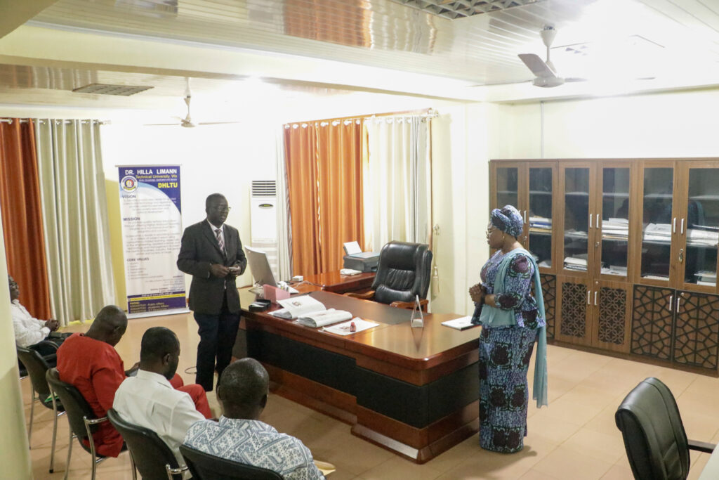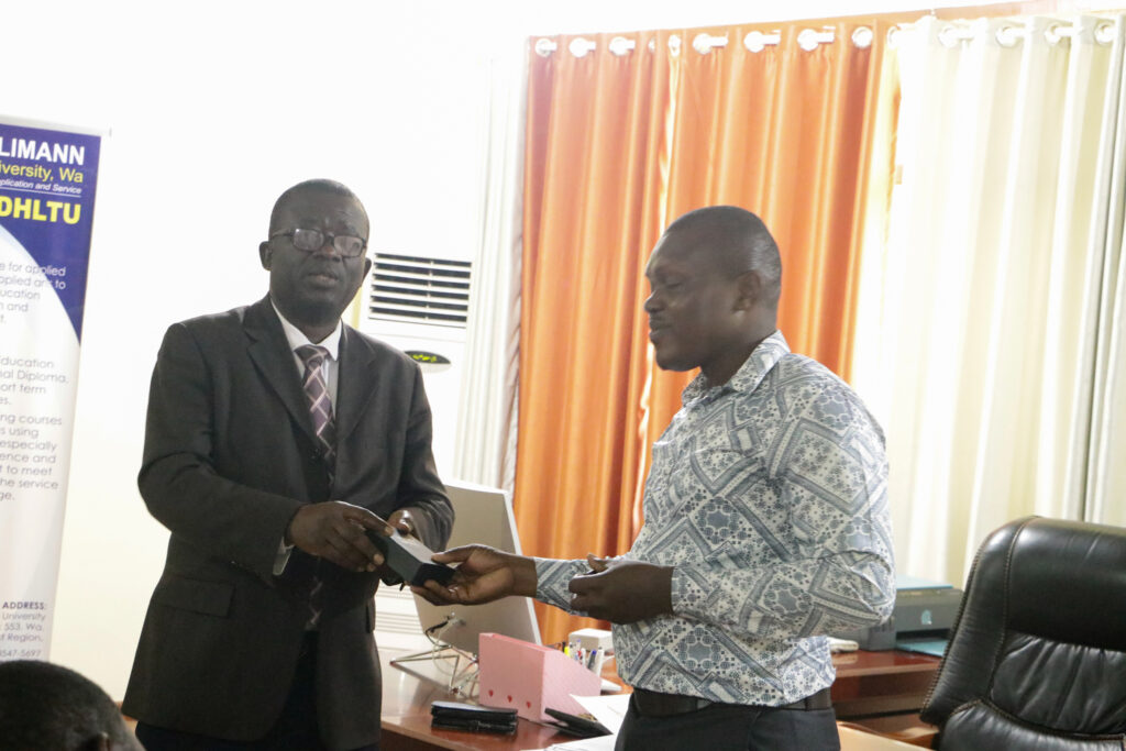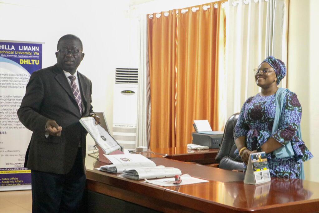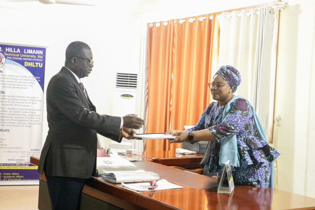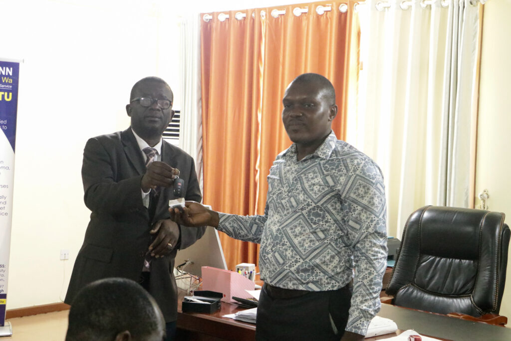 In a brief ceremony held at the Vice Chancellor’s office, outgoing VC, Sir Prof. Elias N. K. Sowley, after serving a term of four years, handed over to the incoming VC, Prof. Ing. Hamidatu Darimani. The Registrar, Mr. Vitus Songotuah, the Director of Finance, Mr. Musah Diaboh, and the Ag attended the event. Director of Internal Audit, Mr. Abdulai Abdul-Razak, and the Ag. Head of Transport, Mr. Isaac Paruzie. The incoming Vice Chancellor expressed gratitude to Sir Prof. Elias Sowley for his contributions to the university, establishing the pace and structures for the transition from Polytechnic to Technical University.