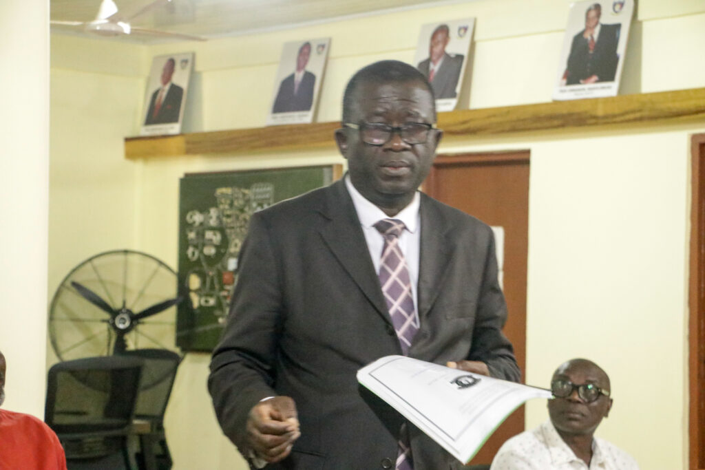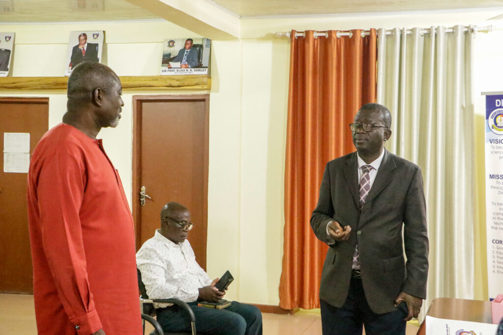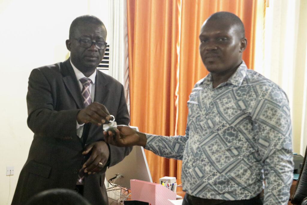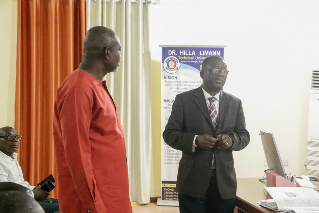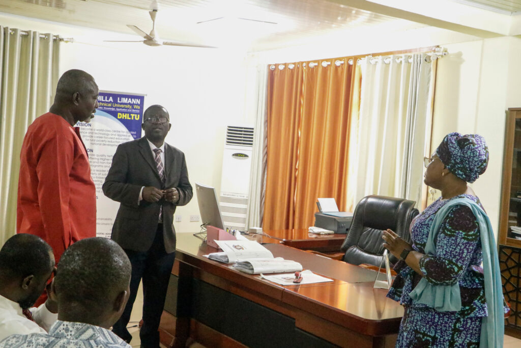 In a brief ceremony held at the Vice Chancellor’s office, outgoing VC, Sir Prof. Elias N. K. Sowley, after serving a term of four years, handed over to the incoming VC, Prof. Ing. Hamidatu Darimani. The Registrar, Mr. Vitus Songotuah, the Director of Finance, Mr. Musah Diaboh, and the Ag attended the event. Director of Internal Audit, Mr. Abdulai Abdul-Razak, and the Ag. Head of Transport, Mr. Isaac Paruzie. The incoming Vice Chancellor expressed gratitude to Sir Prof. Elias Sowley for his contributions to the university, establishing the pace and structures for the transition from Polytechnic to Technical University.