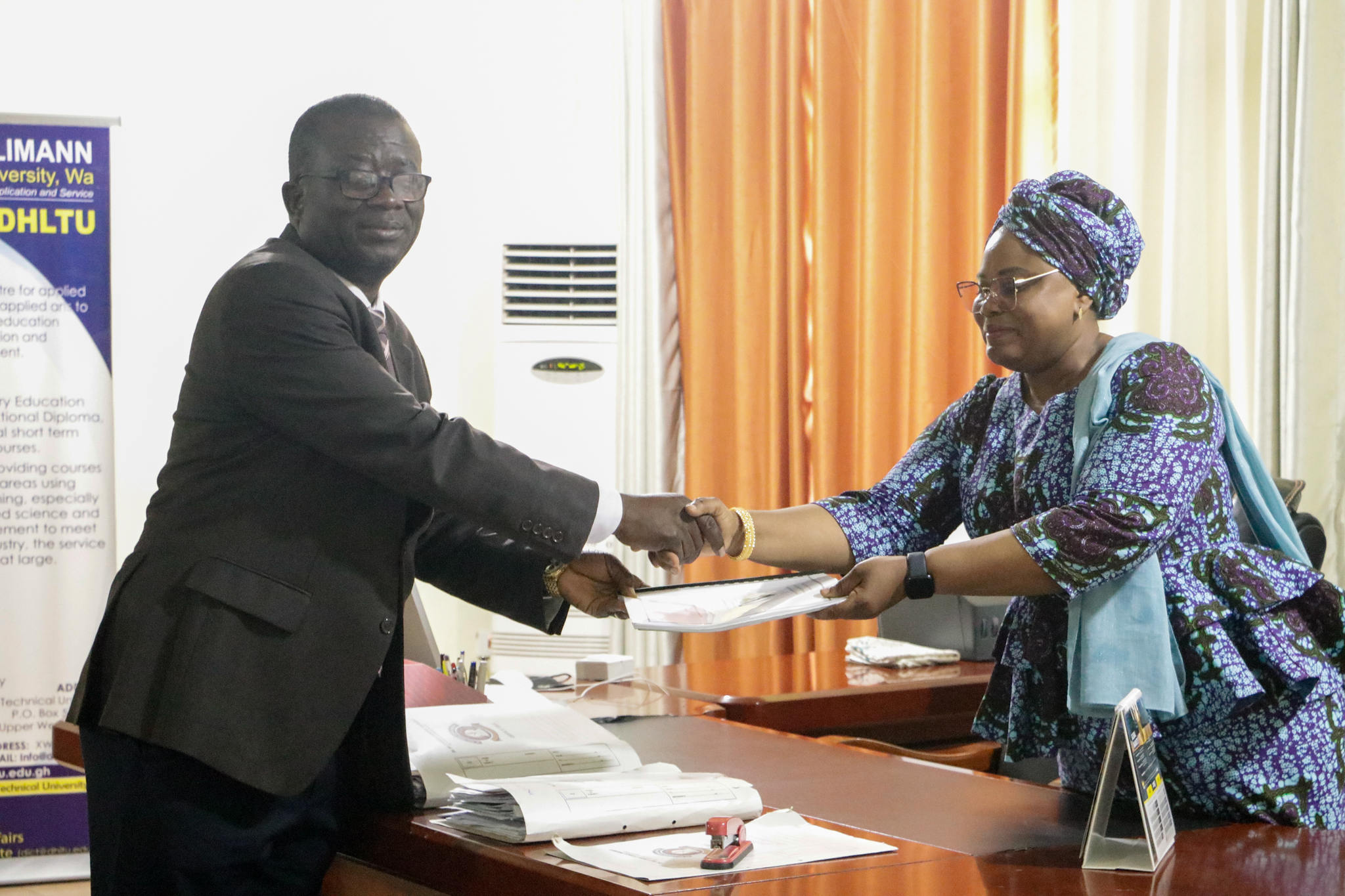 In a brief ceremony held at the Vice Chancellor’s office, outgoing VC, Sir Prof. Elias N. K. Sowley, after serving a term of four years, handed over to the incoming VC, Prof. Ing. Hamidatu Darimani. The Registrar, Mr. Vitus Songotuah, the Director of Finance, Mr. Musah Diaboh, and the Ag attended the event. Director of Internal Audit, Mr. Abdulai Abdul-Razak, and the Ag. Head of Transport, Mr. Isaac Paruzie. The incoming Vice Chancellor expressed gratitude to Sir Prof. Elias Sowley for his contributions to the university, establishing the pace and structures for the transition from Polytechnic to Technical University.